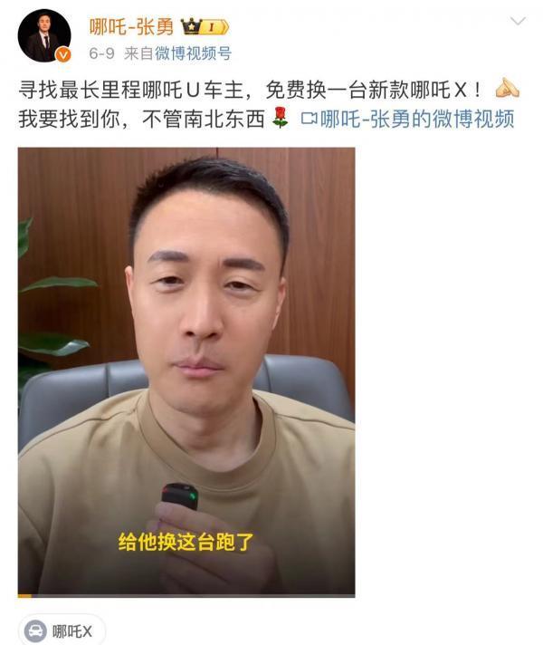 On June 9th, Zhang Yong even published a post to "find the owner of the longest mileage Nezha U and exchange it for a new Nezha X for free."