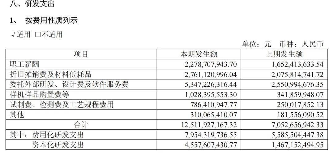 From a breakdown of specific R&D expenses, in 2025, Seres' external R&D commissions, design fees, and software service fees accounted for the majority of R&D expenses, totaling nearly 5.347 billion yuan, or 43% of the total. Additionally, Seres capitalized 4.558 billion yuan of R&D investment, accounting for 36.43%. Capitalizing R&D investment can beautify profit and asset statements in the short term but carries long-term amortization and impairment pressures.