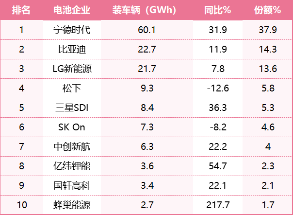 Global battery installation rankings for the first quarter of 2024 released by China Automotive Industry Data Research