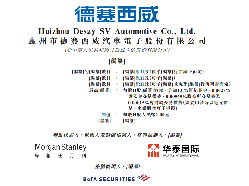 On April 12, Desay SV formally submitted its listing application to the Hong Kong Stock Exchange, with Morgan Stanley and Huatai International as joint sponsors, thereby initiating the dual-listing process on both 'A' and 'H' shares.