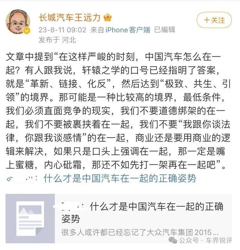 Geely Chairman Li Shufu said, "The endless internal competition, simple and rough price war, results in cutting corners, counterfeiting and selling, and irregular and disorderly competition."