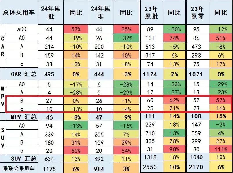 Data from the China Passenger Car Association shows that in the first half of this year, the total volume of the entire MPV market, whether wholesale or retail, was only around 460,000 to 470,000 units, marking a negative growth of 8% to 9%. Entry-level and household A-class MPVs saw the biggest declines, while B-class MPVs remained largely consistent with the same period last year. C-class high-end MPVs, on the other hand, totaled only 100,000 units in the first half, with both retail and wholesale trends pointing downwards. This is a stark contrast to last year's double-digit growth in the high-end MPV segment.