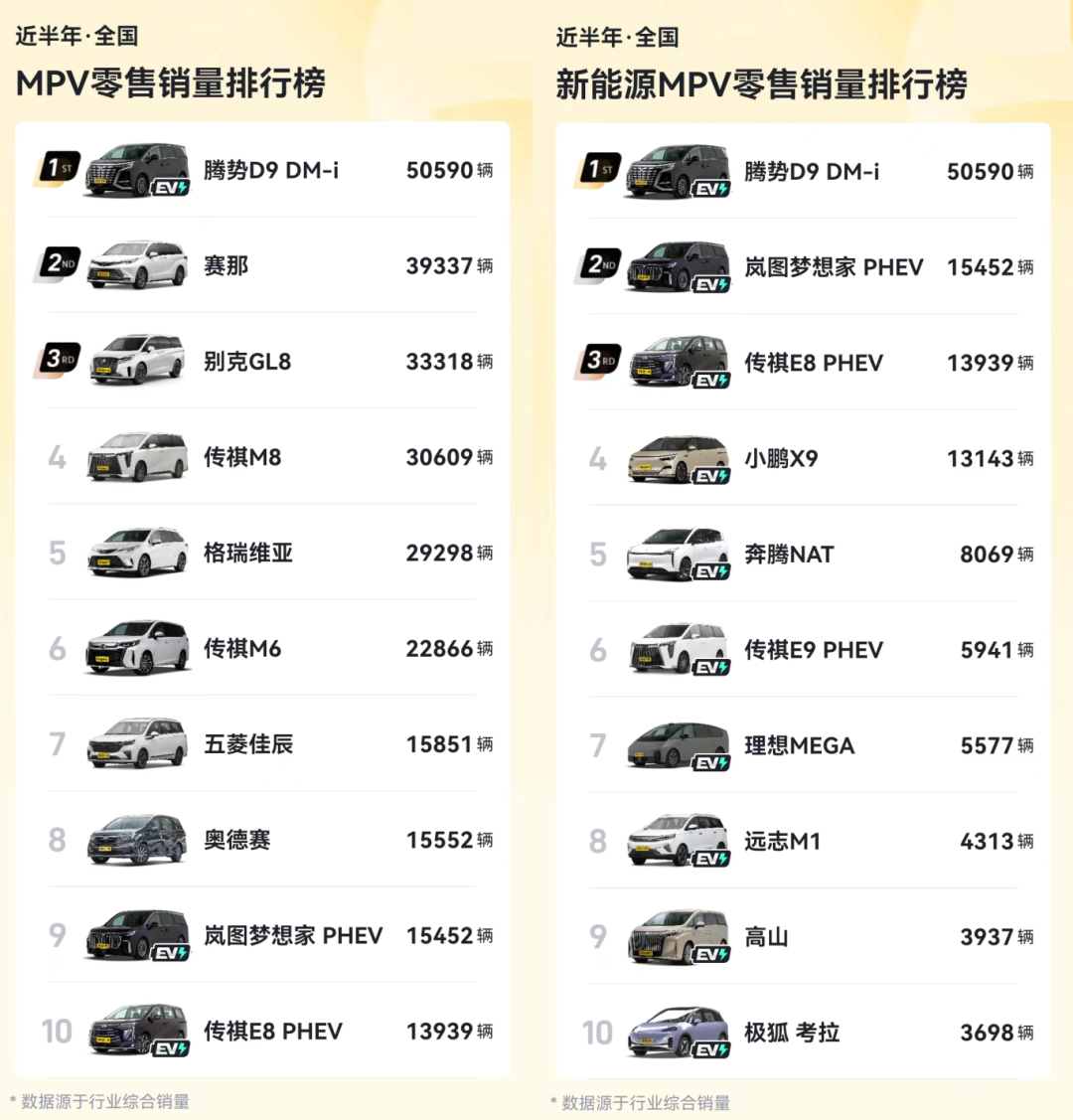 So, even though pure electric is the future direction, pure electric MPVs cannot achieve the same breakthroughs as hybrid MPVs in the short term. This is a costly lesson learned by pure electric MPVs like Tengshi D9, Ideal MEGA, Zeekr 009, and Volvo EM90.