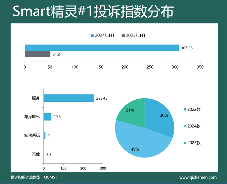 Automotive Quality Complaint Review: In the first half of 2024, the complaint index of the smart #1 reached 307.35, up 500.29% year-on-year. From the complaint feedback, the issue of price reductions directly drove up the complaints about the smart #1, with complaints mainly concentrated on the 2022-2024 models. Old owners complained to AutoHome that they paid for their new cars on March 30, 2024, and took delivery on April 6 without any preferential benefits. However, the new smart #1 models not only received significant price reductions but also additional benefits such as sparkling logos, heated steering wheels, ventilated seats, etc. Currently, owners demand that the manufacturer install the same preferential configurations for them.