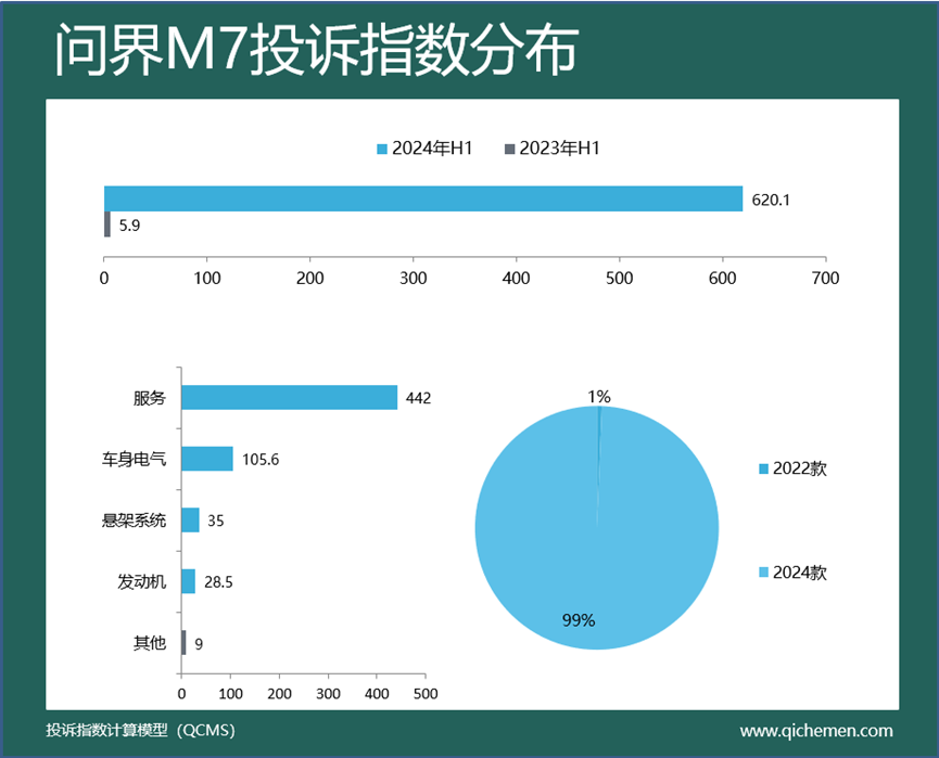 Automotive Quality Complaint Review: The popular Wenjie M7 received a complaint index of 620.1 in the first half of the year, surging by 10410.17% year-on-year, ranking second. Some owners reported to AutoHome that the manufacturer introduced upgraded models shortly after they purchased the Wenjie M7, believing that this behavior of "stabbing old owners in the back" infringed upon their right to know and caused economic losses. Additionally, owners reported that the Wenjie M7 produced "thumping" noises from the trunk during low-speed driving, significantly affecting ride comfort.