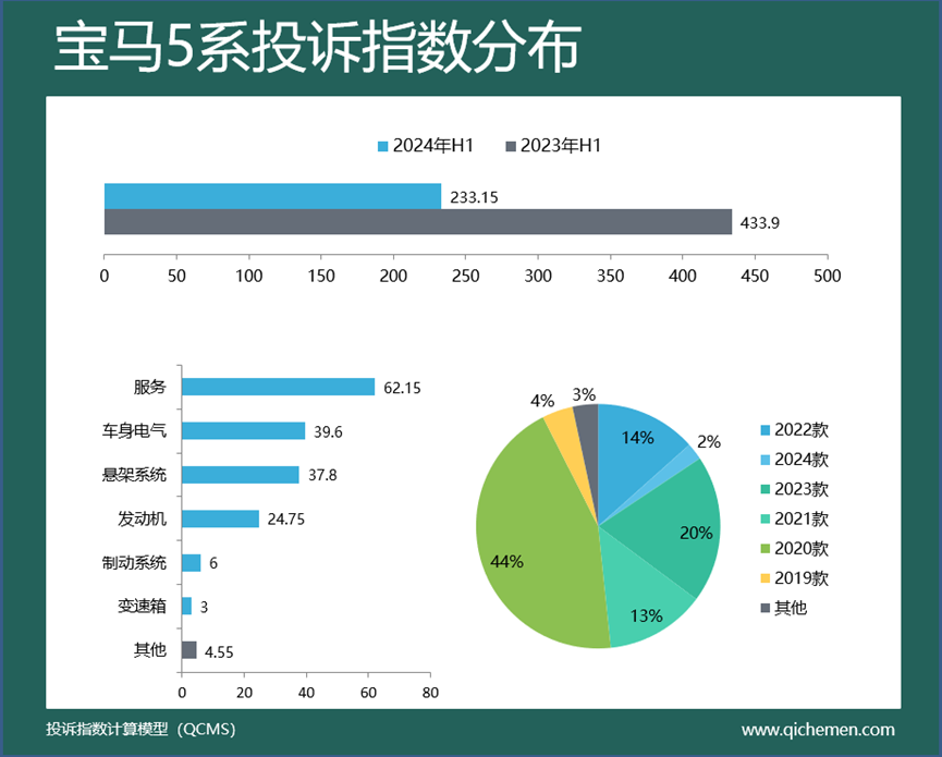 Automotive Quality Complaint Review: In the first half of the year, the complaint index of the BMW 5 Series was 233.15, down 46.27% year-on-year. From the complaints, the focal issues remained the mismatch between in-vehicle system functions and manufacturer's promotions, as well as abnormal noises from the drive shaft. Many owners reported that the iDrive7.0 in-vehicle system functions of the BMW 5 Series did not match the promotions. It is worth mentioning that such issues were present in multiple BMW models. Additionally, abnormal noises from the drive shaft were frequently complained about by owners, particularly evident when switching between R and D gears. Notably, the issue of abnormal noises from the drive shaft was exposed by the 3.15 Evening News this year, followed by a BMW official statement stating that technical inspections had confirmed that the phenomenon would not affect driving safety and could be resolved through repairs, with BMW bearing all related repair costs and compensating owners with 2,000 yuan in vouchers.