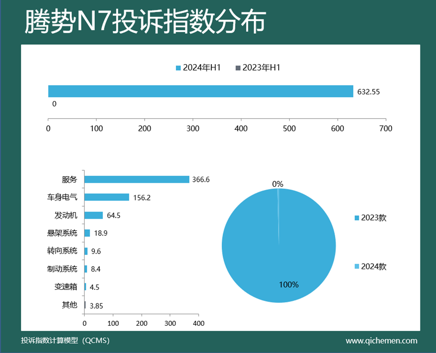 Automotive Quality Complaint Review: From January to June, the complaint index of the Tengshi N7 reached 632.55, with typical complaints being false advertising and price reductions. It is understood that the Tengshi brand promoted the N7 as equipped with the Cloud Suspension-A system during the launch event, and the N7 showcased at the Tengshi booth at the Shanghai Auto Show in April last year also featured the dual-chamber air springs and smart wing seats required for the Cloud Suspension-A system. However, after owners took delivery of their cars, they discovered that the 2023 model of the Tengshi N7 had been replaced with single-chamber air springs and ordinary seats, which failed to meet the initial promotional effects of the Cloud Suspension-A system. Additionally, some owners expressed dissatisfaction with the price reduction of the Tengshi N7, leading to a small number of complaints.