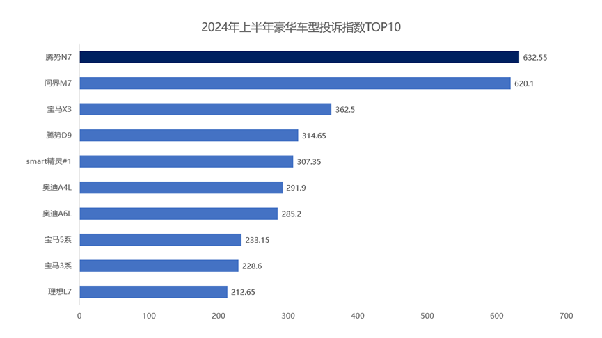 Recently, AutoHome released the complaint list of luxury car models in the first half of 2024. From the list, domestic luxury cars occupy four seats, while German cars occupy six seats. Among the domestic models, two models are from BYD's luxury new energy brand – Tengshi. In the first half of the year, the Tengshi N7 ranked first on the list due to discrepancies between actual vehicle configurations and official announcements, as well as price reductions; the Tengshi D9 ranked fourth, with complaints about the non-functioning car fridge and price reductions. The other two models, the Wenjie M7 and the Lixiang L7, saw rapid growth rates, surging by 10410.17% and 1614.92%, respectively, in the first half of the year.