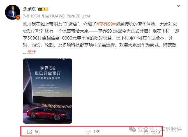 As a result, Seres achieved positive cash flow last year and significant profits this year. In comparison, BAIC BluePark seems to have missed the best opportunity to catch Huawei's fast train. Currently, relying on an executive-level S9 to turn BAIC BluePark around seems like an uphill battle. Do you agree?