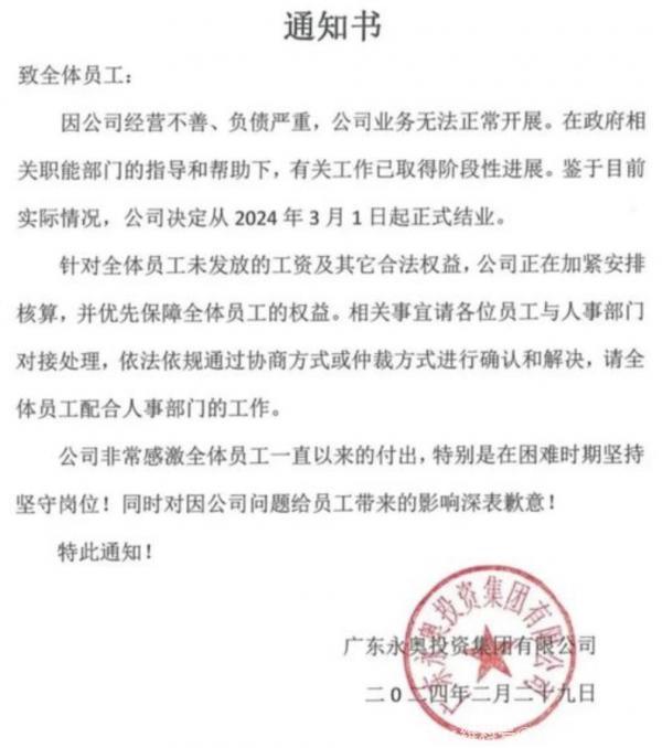 Photo/Yongao Group announced closure on March 1, 2024