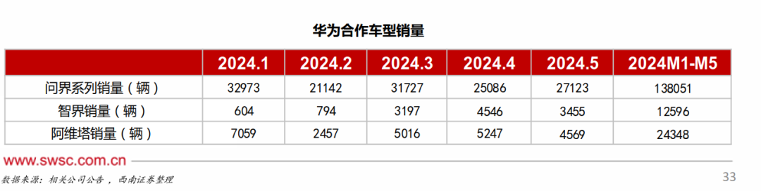 In addition to Seres, automakers such as Changan, SAIC, GAC, Beijing Automotive Group, Chery, Dongfeng, and FAW have all cooperated with Huawei to launch models for the mass market. Recently, there were also reports that JAC and Huawei's jointly developed Zunjie model may be priced at the million-yuan luxury level. On July 12 of this year, Xiang Xing, Chairman and General Manager of Anhui JAC Motor Group Holding Co., Ltd., stated at the "2024 China Automotive Forum" that they will fully promote cooperation with Huawei, and the first product has entered the vehicle testing and verification stage, with plans to roll off the production line this year and be launched in the first half of next year. Furthermore, the development of subsequent products is progressing steadily.