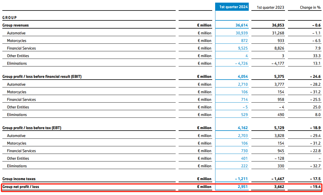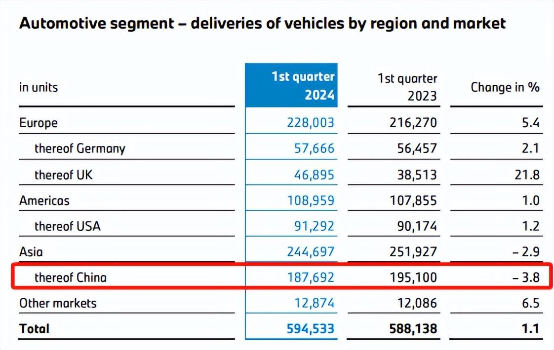 Regionally, among BMW Group's various markets worldwide, only China has experienced a decline in vehicle sales, falling from 195,100 units in the first quarter of 2023 to 187,700 units in the same period of 2024, a year-on-year decline of approximately 3.8%.