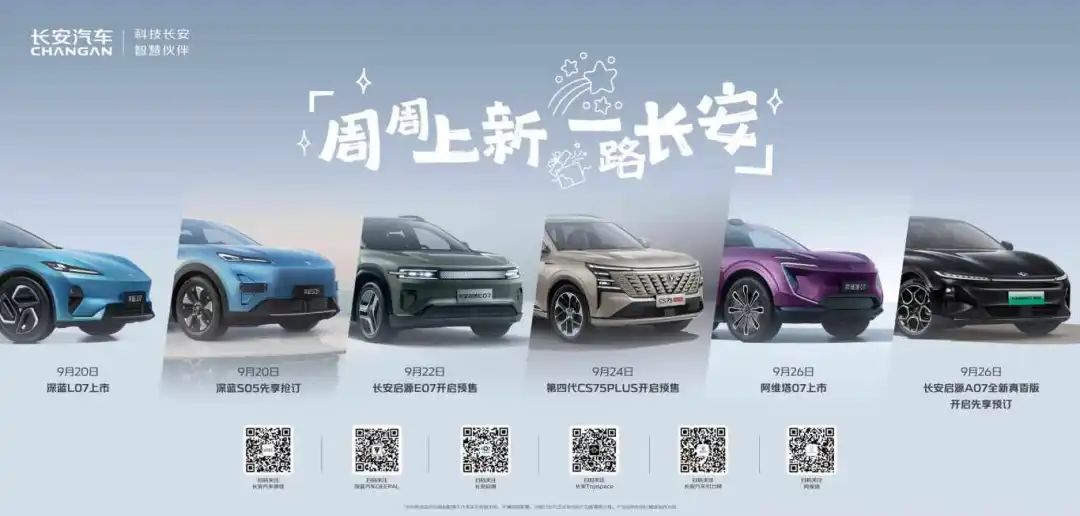 Similarly, Chang'an Automobile didn't lag behind, announcing six new model launches or debuts in the week of September 20-26 under the slogan "New Models Every Week, Chang'an Always on the Road."