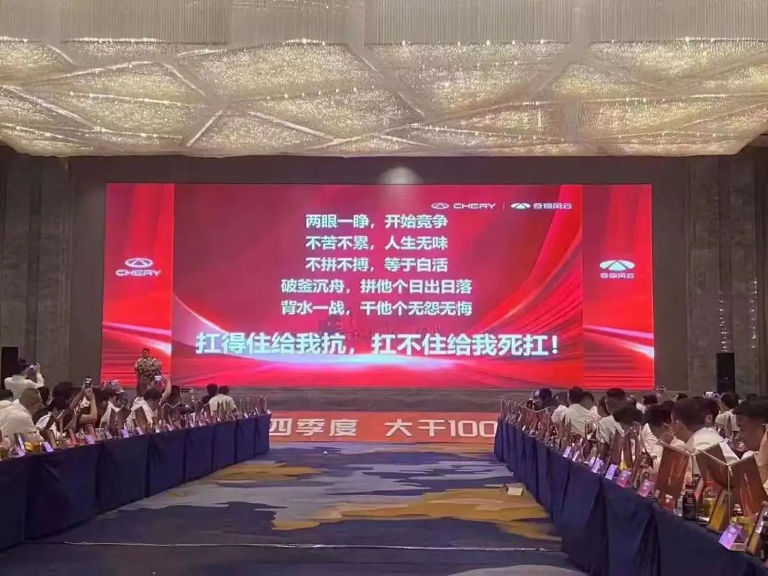At first glance, one might think this is a car dealership trying to motivate its salesforce, but in reality, it's Chery Automobile's year-end sprint conference. Many saw this image without much reaction, but others noticed a typo: "stand firm" was mistakenly written as "resist." It's clear that automakers are under immense pressure this year.