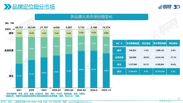 In contrast, Chinese brands have surged, with cumulative retail sales accounting for 58.8% of the total market share from January to September this year, an increase of nearly 25 percentage points compared to the same period in 2020.