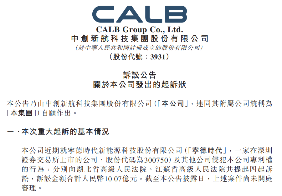 Recently, the power battery industry has witnessed a highly anticipated legal dispute. CALB has officially announced that it has filed a lawsuit against Contemporary Amperex Technology Co., Limited (CATL), Tesla, Zeekr, and Avita, accusing them of infringing on several of its patents.