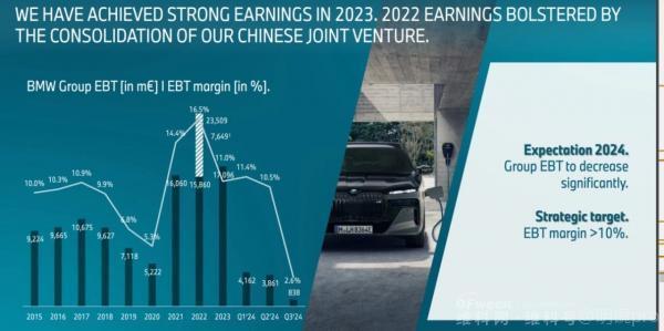 Regarding future outlook, BMW stated that due to technical issues in the third quarter, the BMW Group has adjusted its full-year performance outlook. It is expected that the Group's pre-tax profit for the full year will decrease significantly, with automotive segment deliveries slightly below last year's level. The EBIT margin is expected to be between 6% and 7%, and the return on capital employed (RoCE) will be between 11% and 13%. However, BMW still adheres to its strategic goal of a Group EBT margin of >10%.