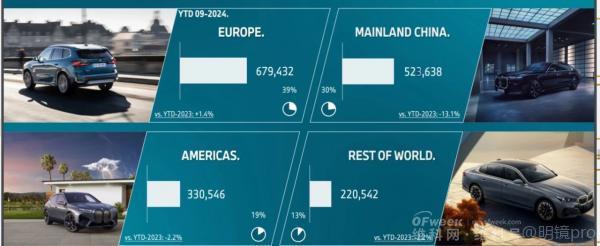 Looking at profits, in the third quarter of this year, the BMW Group's EBIT was €1.696 billion, compared to €4.352 billion last year, a year-on-year decrease of 61%. The BMW Group's EBIT for January to September was €9.627 billion, down 31.6% from last year's €14.07 billion.