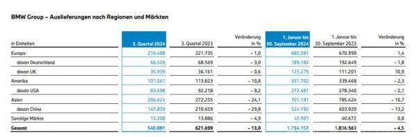 In terms of deliveries, BMW delivered a total of 540,881 BMW, MINI, and Rolls-Royce branded vehicles in the third quarter, a year-on-year decrease of 13.0%. For the first nine months, BMW delivered a total of 1,754,158 BMW, MINI, and Rolls-Royce branded vehicles globally, firmly maintaining its position at the top of German luxury car sales. In the Chinese market, BMW and MINI delivered only 147,691 vehicles in the third quarter, a year-on-year decrease of 29.8%, nearly a 30% drop. From January to September this year, BMW sold a total of 524,000 vehicles in China. Among them, the Chinese market saw the largest decline of 13.1% among all markets.