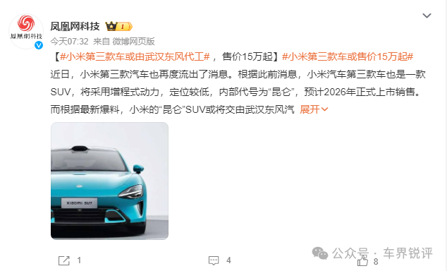 At this point, the revelation that Wuhan Dongfeng Factory may produce Xiaomi's third SUV no longer seems far-fetched.
