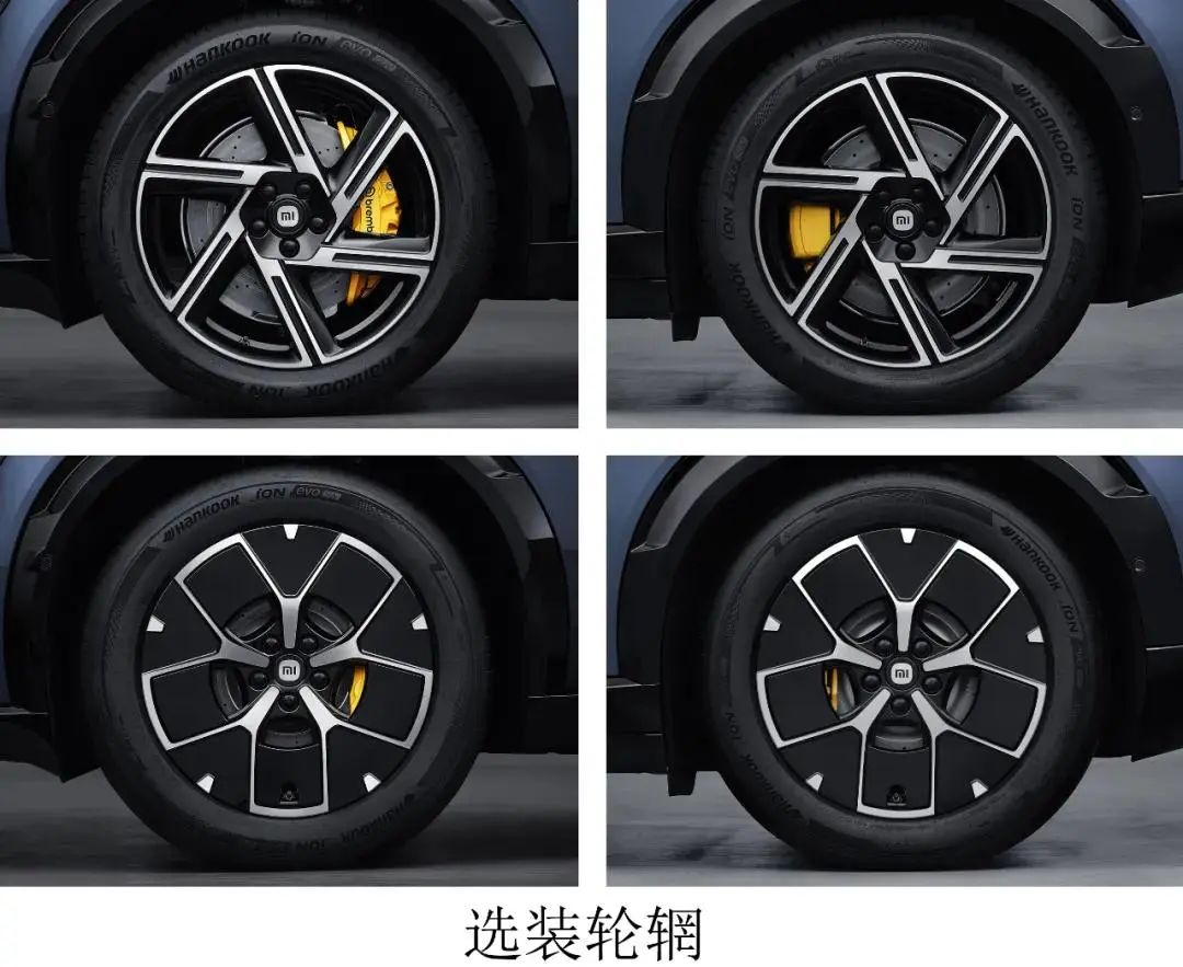 From the side view, Xiaomi YU7 features smooth overall lines, but unlike the highly acclaimed semi-hidden door handle design of SU7, YU7 adopts hidden door handles. It's unclear if this change is based on considerations of wind resistance coefficients. Additionally, the new car offers two styles of wheels: five-spoke petal-shaped and six-spoke, available in sizes of 19/20/21 inches, paired with yellow brake calipers, giving it a sporty and luxurious appearance.