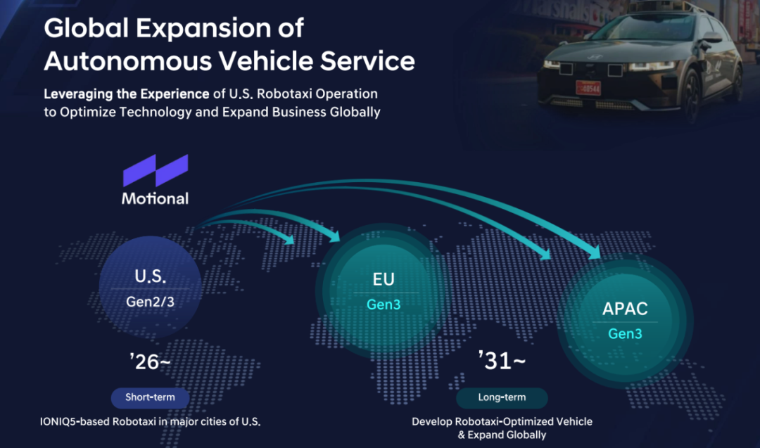 Hyundai is developing L4 technology and scaling L3, L4 software to generate additional profits from L4 Robotaxi services, such as through deliveries and advertising.