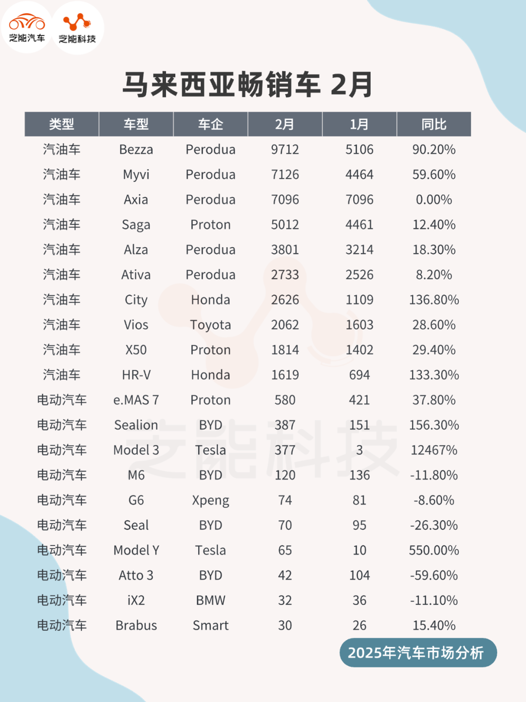 ◎ Perodua Bezza: Sold 9,712 units in February, a 90.2% month-on-month increase, making it the best-selling model.