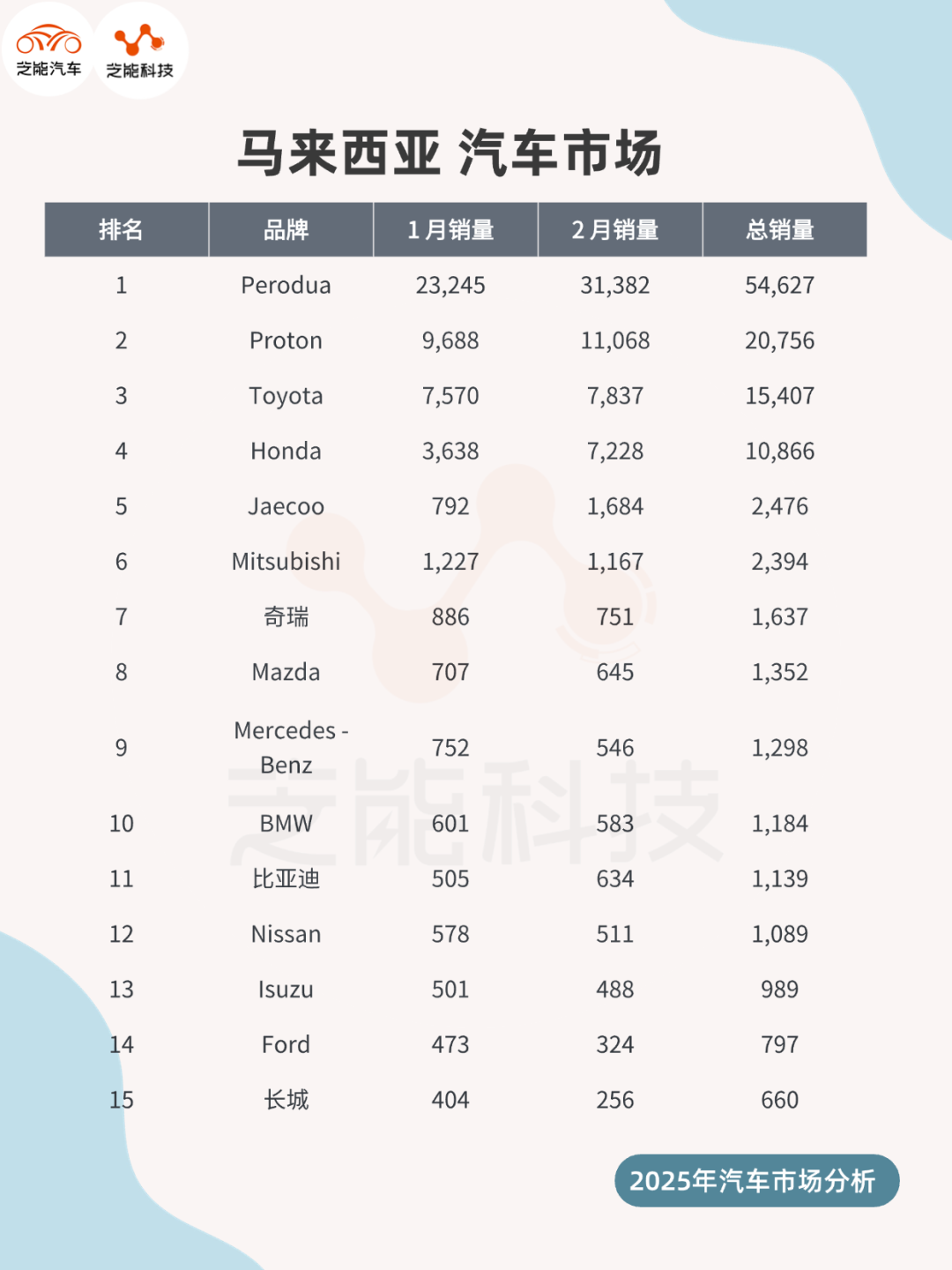 ◎ Perodua topped the list with a cumulative total of 54,627 units for January and February, selling over 30,000 units in February alone, demonstrating robust market dominance.