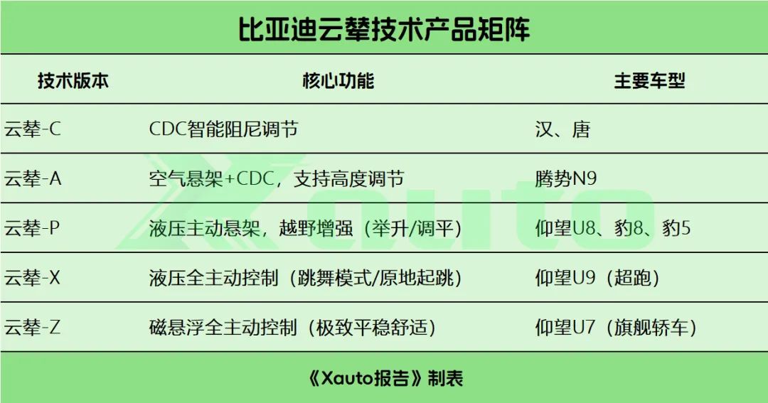 While CloudRide-C, A, P, and X have competitors and reference solutions in the market, CloudRide-Z represents a vertically integrated black technology exclusively created by BYD, venturing into uncharted technological territories.