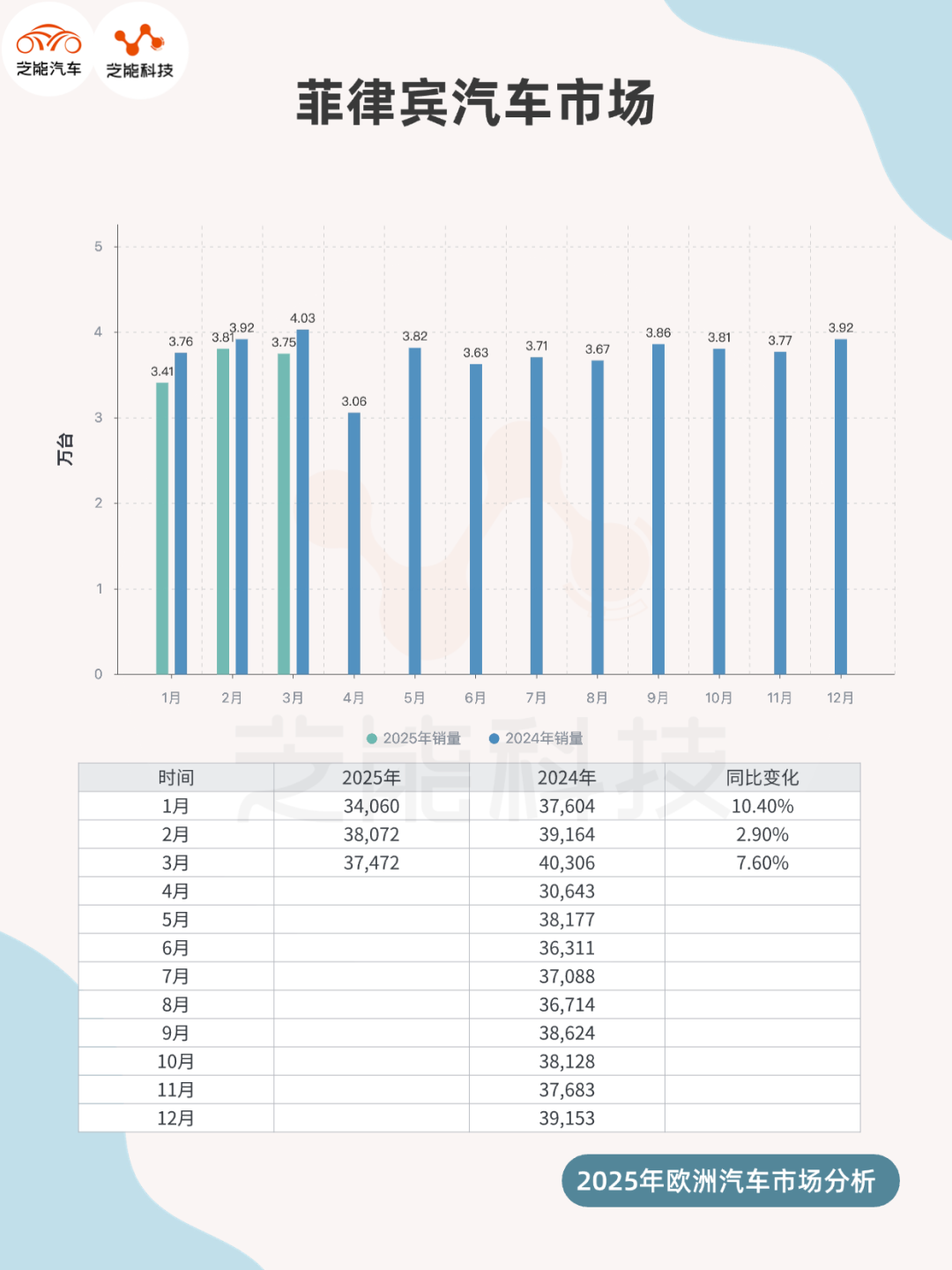 In March 2025, total auto sales in the Philippines reached 40,306 units, marking a 7.6% year-on-year increase. Cumulative sales for the first quarter stood at 117,074 units, up 6.8% year-on-year.