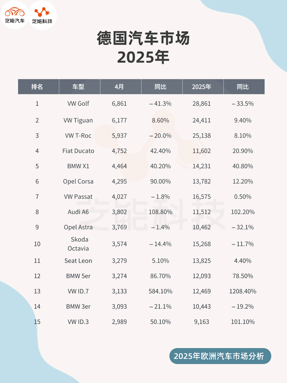 At the model level, despite a 41.3% year-on-year drop, the Volkswagen Golf retained its top sales position, underscoring the resilience of its core market.