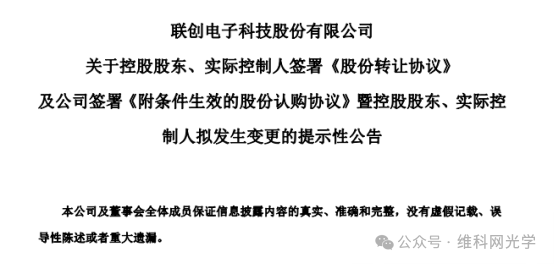 On December 25, Lianchuang Electronics made a significant announcement. Its controlling shareholder, Jiangxi Xinsheng Investment Co., Ltd. (hereinafter referred to as "Jiangxi Xinsheng"), entered into a Share Transfer Agreement with Nanchang Beiyuan Intelligent Industry Investment Partnership (Limited Partnership) (hereinafter referred to as "Beiyuan Intelligence"). According to the agreement, Beiyuan Intelligence will make staggered payments totaling RMB 900 million to acquire 70,866,100 non-restricted tradable shares of Lianchuang Electronics currently held by Jiangxi Xinsheng. These shares represent 6.71% of the total outstanding shares of the listed company.